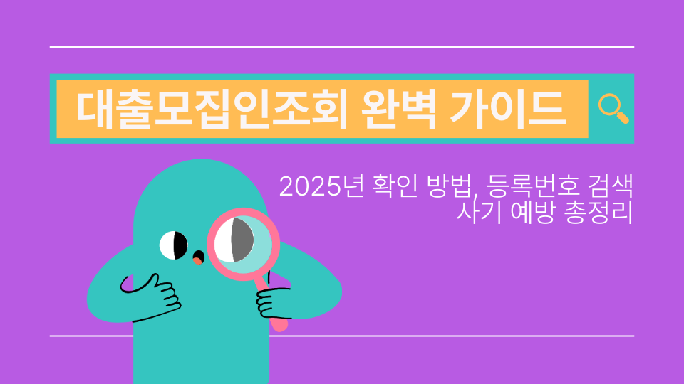 대출모집인조회 방법을 찾고 계신가요? 2025년 최신 대출모집인 확인 방법부터 대출상담사 조회까지 완벽하게 정리해드립니다. 대출모집인 등록번호, 대출모집인 검색, 정식 대출모집인, 대출사기 예방까지 모든 정보를 담았습니다. 대출모집인조회 가이드로 안전한 대출 상담을 받으세요!