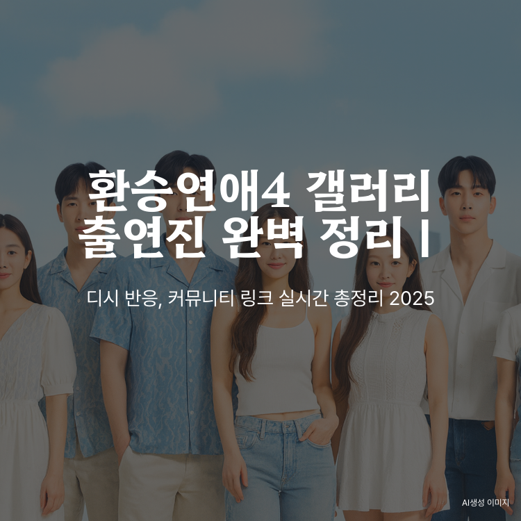 환승연애4 갤러리가 궁금하신가요? 2025년 10월 첫 방송 이후 환승연애4 갤러리는 디시인사이드, 네이트판, 뽐뿌 등 각종 커뮤니티에서 뜨거운 반응을 보이고 있습니다. 이 글에서는 환승연애4 갤러리 주요 커뮤니티 링크부터 실시간 반응, 팬들의 커플 예측까지 모든 정보를 정리해드립니다!