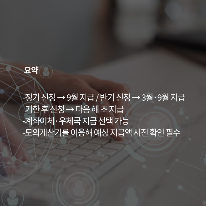 근로장려금 지급일은 정기·반기·기한후 신청에 따라 달라집니다. 정기신청은 매년 9월에 지급되며, 반기신청은 3월·9월 두 차례에 걸쳐 지급됩니다. 기한 후 신청의 경우 다음 해 초에 지급됩니다. 지급은 본인이 선택한 계좌로 입금되며, 계좌가 없는 경우 우체국 현금 지급도 가능합니다. 또한, 가장 정확한 예상 지급액을 알고 싶다면 홈택스의 ‘근로장려금 모의계산기’를 이용하면 됩니다. 소득·가구 구성·재산을 입력하면 실제 산식에 따라 자동 계산되므로, 신청 전 반드시 확인하는 것을 추천합니다.