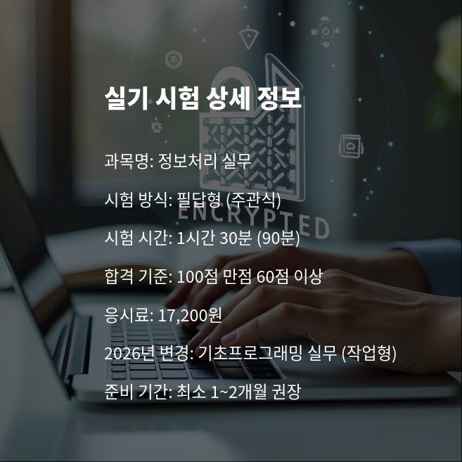 2026년부터는 실기시험이 '기초프로그래밍 실무'라는 이름으로 작업형으로 변경됩니다. 컴퓨터로 직접 코딩하고 실행하는 형태로 돌아가는 것이므로, 앞으로 실기 준비는 실제 프로그래밍 실습이 더욱 중요해질 것입니다.