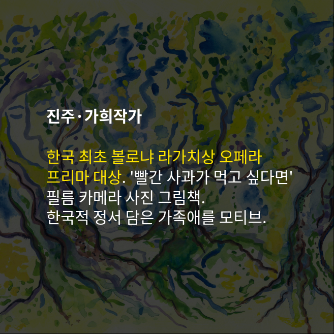 가희 작가는 수상 소감에서 "진주 작가의 제안 덕분에 가족들과 함께하는 작업을 할 수 있었다. 힘든 줄 모르고 완성할 수 있었고, 첫 도전의 열정과 주변 응원의 기운이 컸기에 이번 수상이 있었다"며 "이 기운이 작아지지 않도록 감사하며 성실하게 살겠다"고 밝혔습니다.