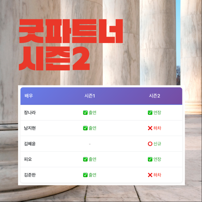 ✅ 장나라 연장 | ⭕ 김혜윤 투입 | ✅ 피오 연장 | ❌ 남지현 하차 | ❌ 김준한 하차