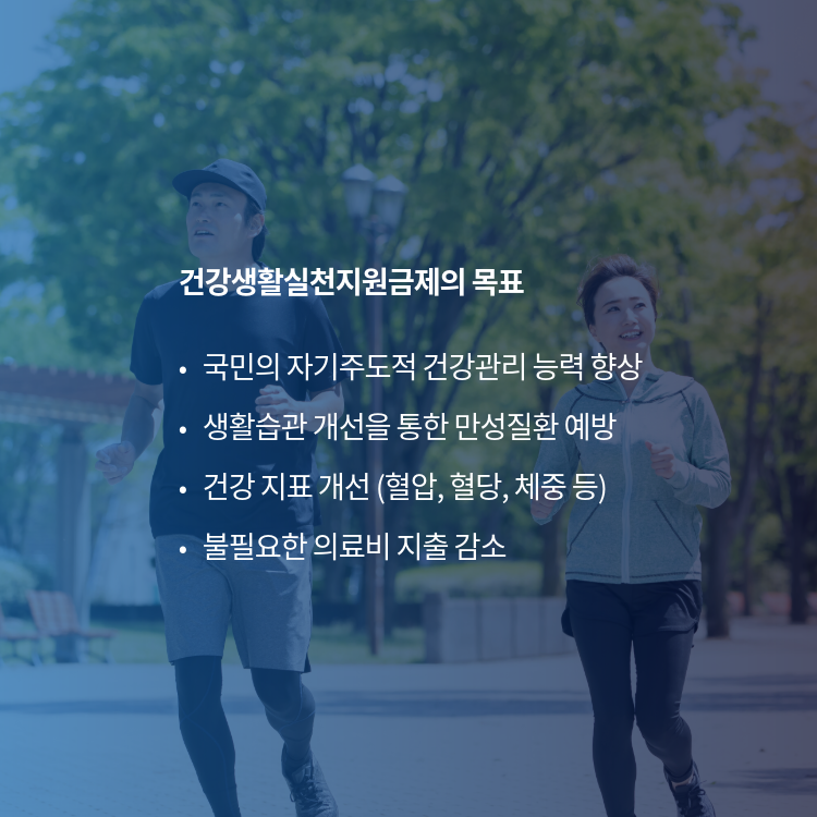 이에 정부는 국민이 스스로 건강관리의 주체가 되어 건강생활을 실천하도록 동기를 부여하고, 불필요한 의료비 지출을 줄이기 위해 건강생활실천지원금제를 도입했습니다.