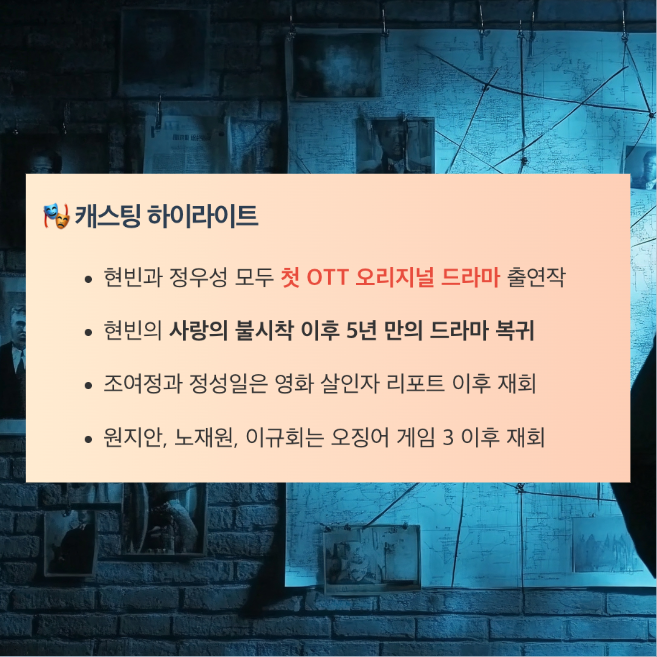 메이드인코리아는 현빈과 정우성이라는 대한민국 최정상급 배우를 비롯해 우도환, 조여정, 서은수, 원지안 등 화려한 캐스팅으로 제작 전부터 큰 주목을 받았습니다. 각 배우들이 맡은 역할과 캐릭터 정보를 한눈에 확인할 수 있도록 정리했습니다.