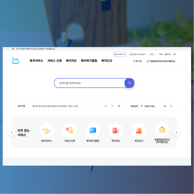 • 복지로 웹사이트 (www.bokjiro.go.kr) 접속