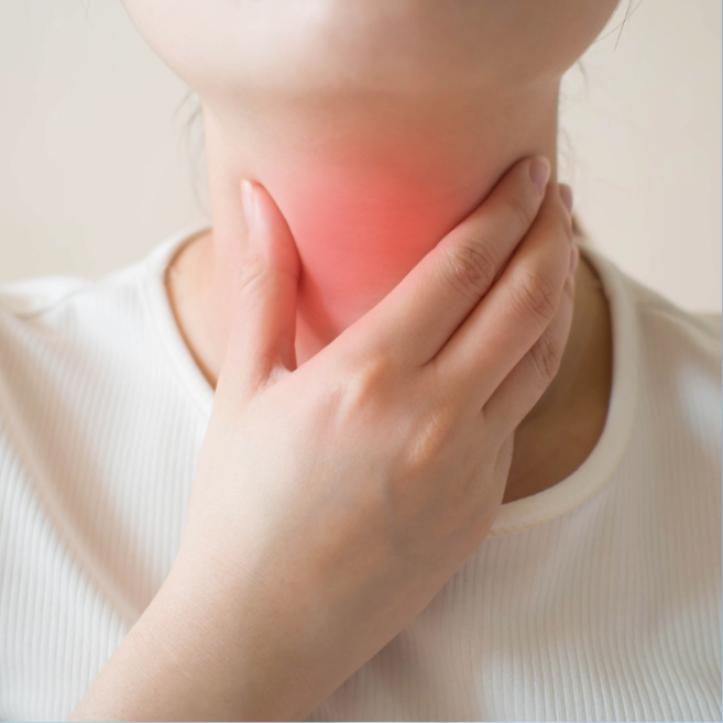 종양에 궤양이나 염증이 생기거나 신경 침범이 있을 때 목 통증이 발생합니다. 주로 음식물을 삼킬 때 심해지며, 지속적인 인후통이 사라지지 않고 계속되면 후두암을 의심해야 합니다.