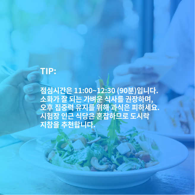 • ✅ 알람 2개 이상 설정 (최소 시험 2시간 전 기상)