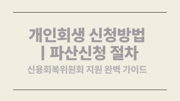 개인회생 신청방법과 파산신청 절차를 단계별로 상세히 안내드리겠습니다. 신용회복위원회를 통해 신청하면 전 과정을 무료로 지원받을 수 있습니다.
