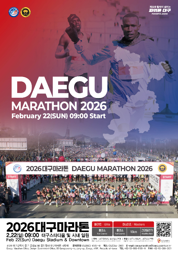 2026 대구마라톤은 대구광역시에서 주최하는 세계 수준의 마라톤 대회입니다. 세계육상연맹(World Athletics) Gold Label 인증을 받은 프리미엄 대회로, 국내외 많은 러너들이 참가하는 대표적인 마라톤 대회입니다.