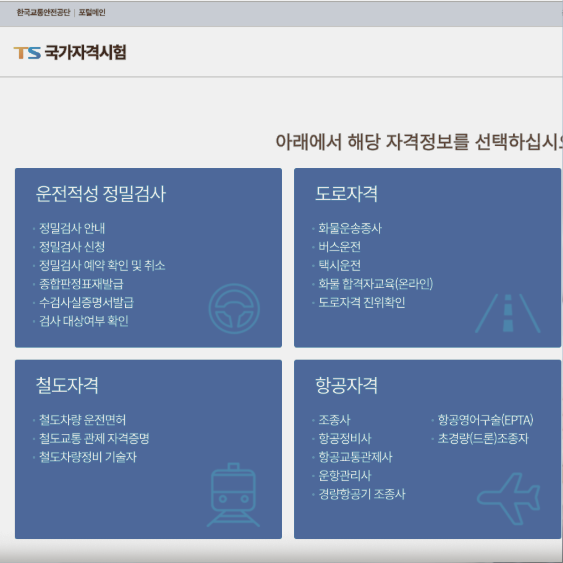 - 한국교통안전공단 TS 자격시험 홈페이지 접속