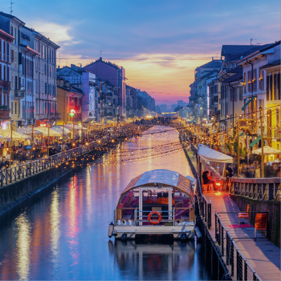 레오나르도 다 빈치가 설계에 참여한 인공 운하로, 현재는 밀라노에서 가장 감성적인 지역으로 변모했습니다. 운하를 따라 늘어선 카페, 레스토랑, 빈티지 숍들이 매력적이며, 매달 마지막 일요일에는 골동품 시장이 열립니다. 저녁 시간의 야경이 특히 아름답습니다.