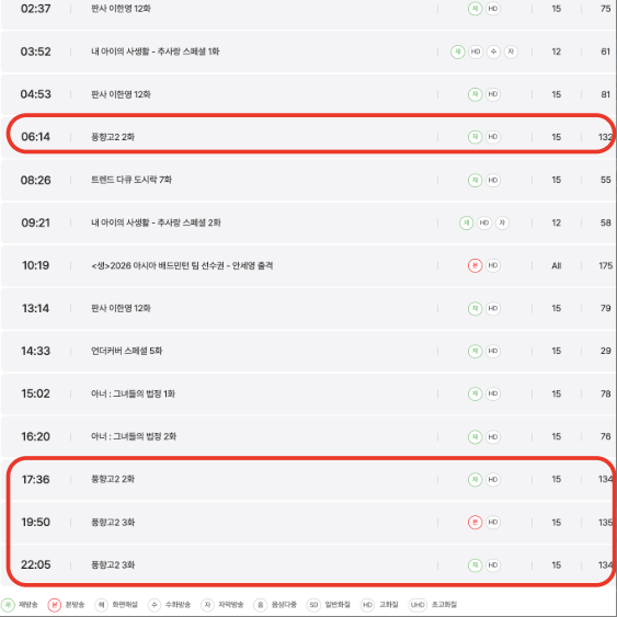 구체적인 재방송 시간은 ENA 편성표를 통해 확인할 수 있으며, 일반적으로 평일 새벽 시간대에 재방송되는 패턴을 보입니다. 2월 5일 수요일 기준 ENA 편성표에서 풍향고2 2회가 새벽 2시 5분에 재방송된 것으로 확인되었습니다.