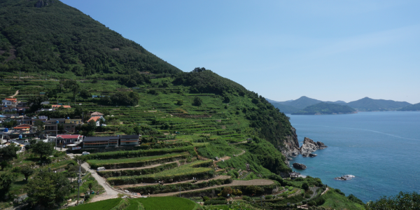 45~70도에 이르는 가파른 경사지에 선조들이 돌을 쌓아 일군 680여 개 계단식 논이 바다를 향해 층층이 펼쳐집니다. 총 100여 층으로 이어진 곡선형 논과 남해 바다가 어우러지는 풍경은 계절마다 다른 색으로 물듭니다. 봄에는 노란 유채꽃, 여름에는 초록 논, 가을에는 황금빛 벼이삭, 겨울에는 논두렁 선이 가장 선명하게 드러납니다.