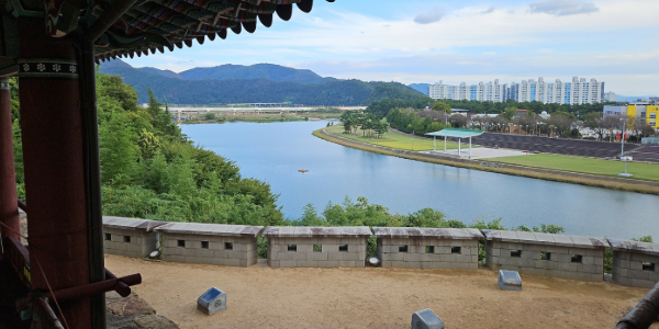 🌙 영남루 야경 팁: 야경은 해 질 무렵 자동으로 조명이 켜집니다. 여름(4~6월)에는 대략 오후 8시 전후에 점등됩니다. 영남루 건물 안쪽은 오후 6시 전후로 입장이 마감되므로, 야경은 강 건너편 밀양강변 둔치에서 감상하는 것을 추천합니다.