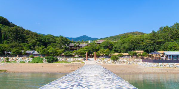 드라마 '해신' 촬영지로 유명한 전통 포구 세트장입니다. 본영·저잣거리·포구 등 고증이 잘 된 건축물이 인상적이며, 다도해 섬들 뒤로 넘어가는 일몰이 특히 아름답습니다. 입장료 성인 5,000원이며, 완도수목원에서 오후 시간을 보낸 뒤 일몰 시간에 맞춰 방문하는 코스가 인기입니다.