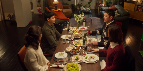 주인공은 딱 4명입니다. 영화의 배경도 아파트 거실 하나가 거의 전부로, 네 배우의 티키타카 연기로만 107분을 끌고 갑니다.