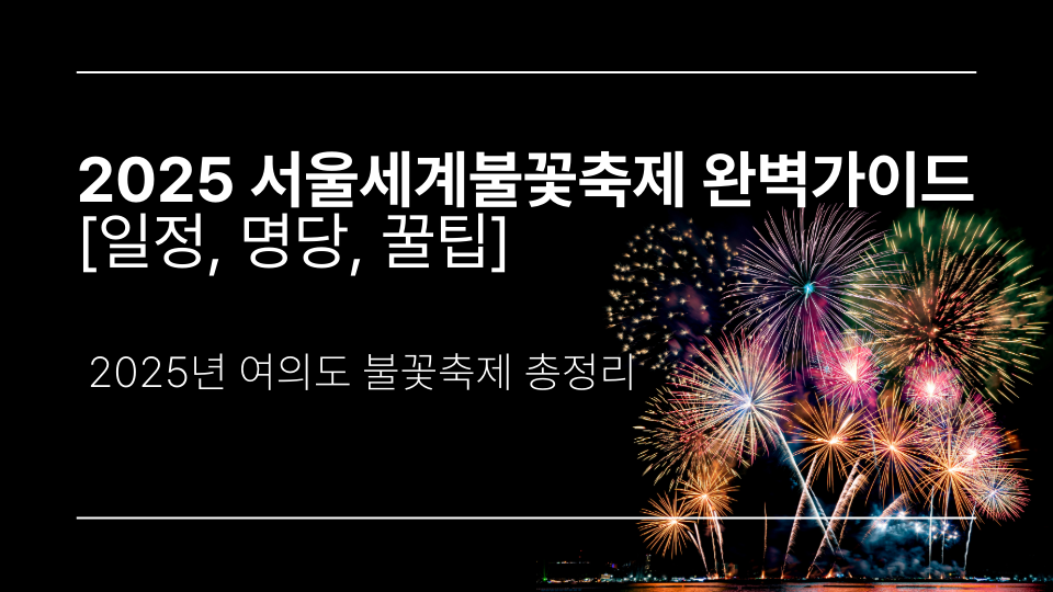 2025 서울세계불꽃축제에 대한 완벽한 가이드를 제공해드렸습니다. 9월 27일 토요일, 여의도 밤하늘을 수놓을 환상적인 불꽃쇼를 위한 모든 준비가 끝났습니다!