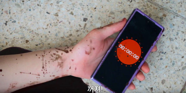 ▸ 동시에 아지트에 있던 혜령 폰의 기리고 인터페이스도 붉게 변하며 액정이 박살남
